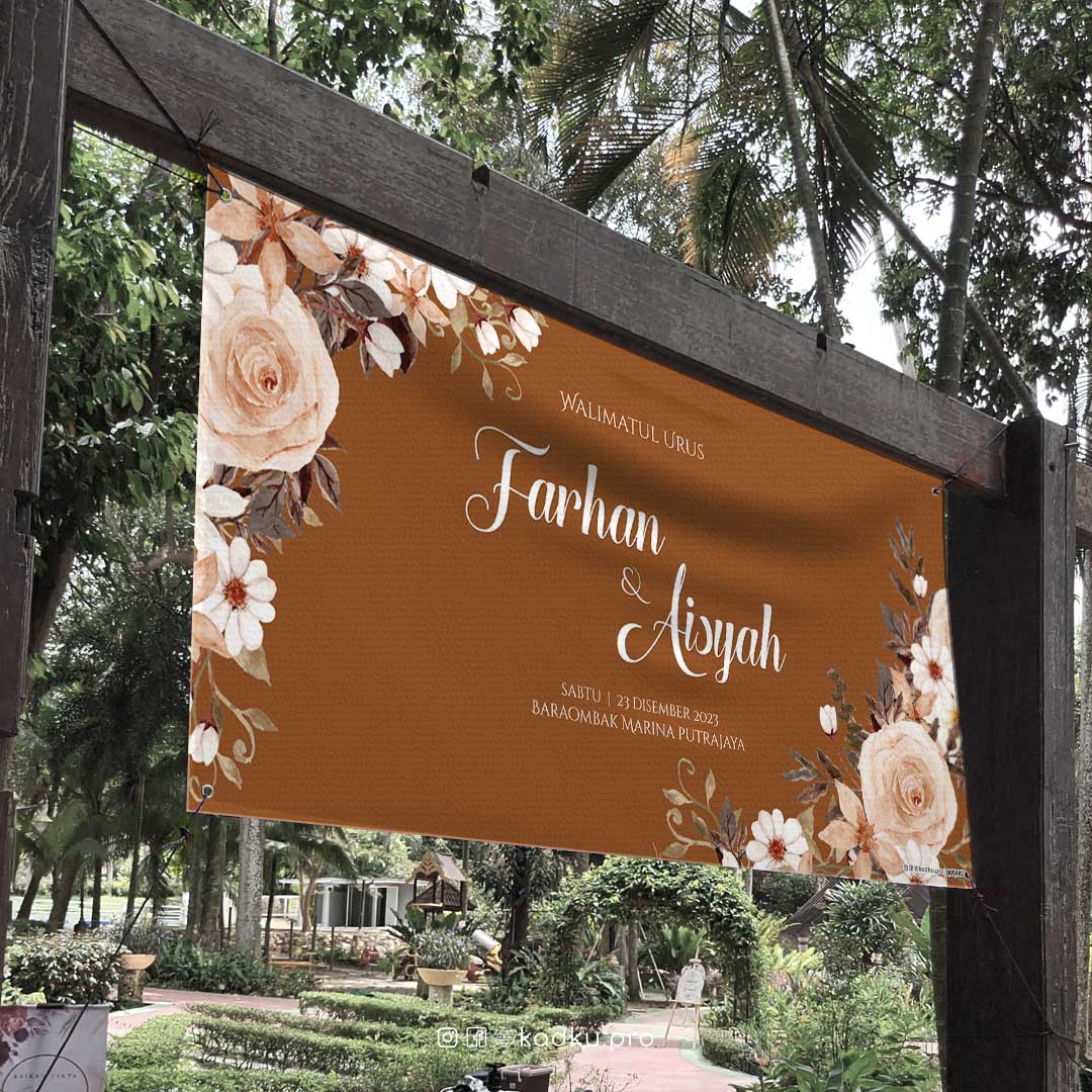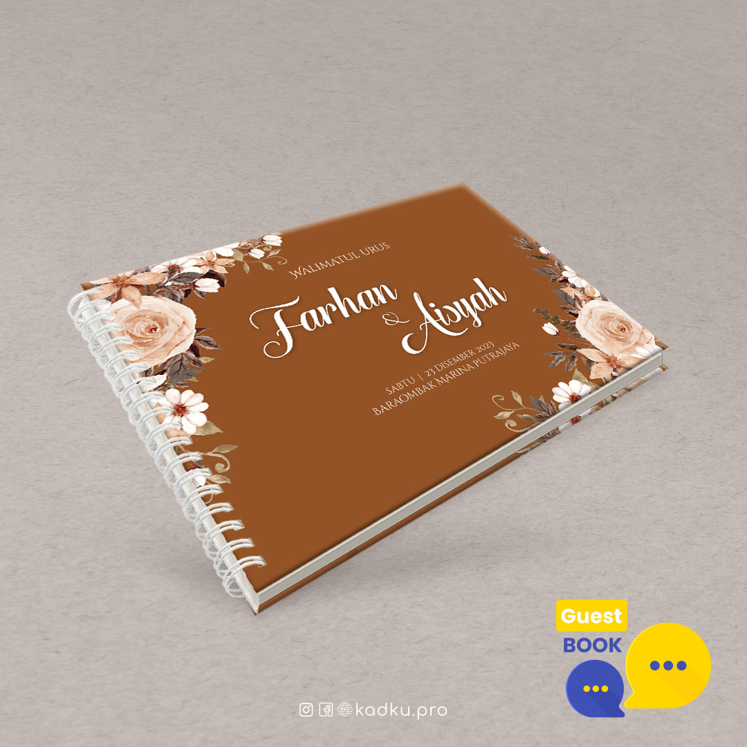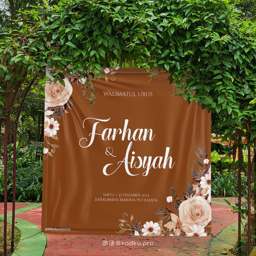 Elemen floral klasik (ros dan bunga putih) yang terlihat eksklusif. Background bertemakan warna coklat keperangan.